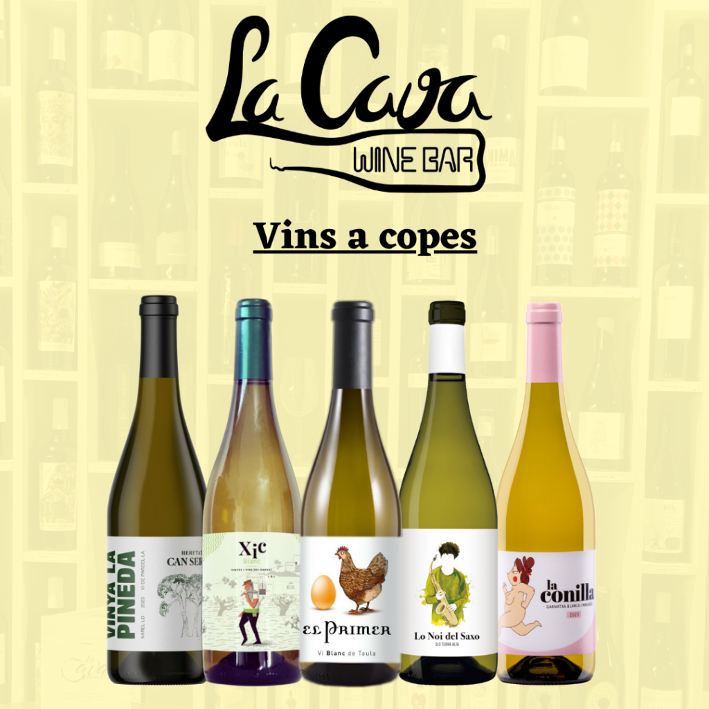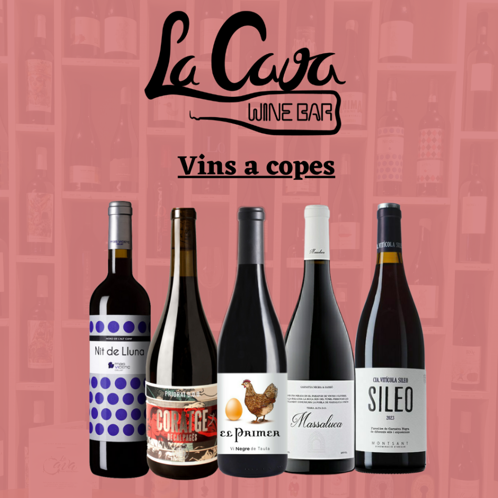 Des de La Cava wine bar, apostem pels petits cellers d’arreu de Catalunya. Oferim una carta de vins a copes que canviem cada mes, cinc blancs, un rosat, i cinc vermells (red wine). Pots escollir entre més de 150 vins de les 12 denominacions d’origen presents a Catalunya, i vins sense denominació d’origen.