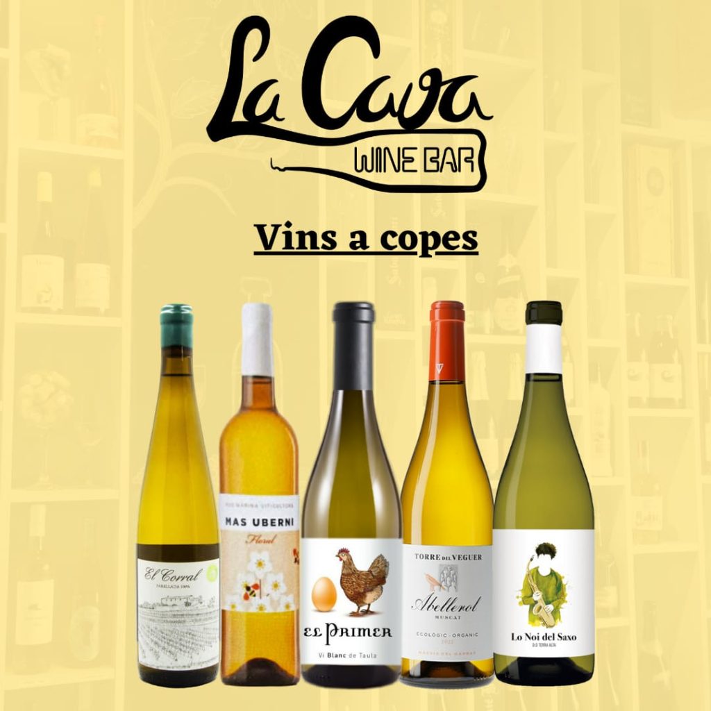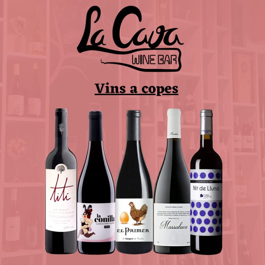 Des de La Cava wine bar, apostem pels petits cellers d’arreu de Catalunya. Oferim una carta de vins a copes que canviem cada mes, cinc blancs, un rosat, i cinc vermells (red wine). Pots escollir entre més de 150 vins de les 12 denominacions d’origen presents a Catalunya, i vins sense denominació d’origen.